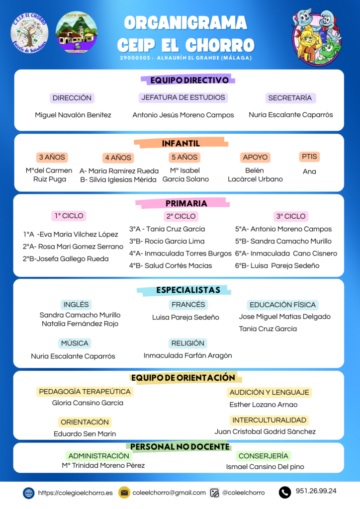En el CEIP El Chorro sabemos que el corazón de un colegio son las personas que lo forman. Contamos con un equipo de profesionales comprometidos, vocacionales y cercanos, dedicados día a día a acompañar a vuestros hijos e hijas en su crecimiento personal y académico. A continuación, os presentamos a los docentes y al personal que hace posible que nuestra escuela funcione cada día.